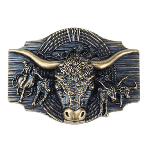 Bältesspänne Rodeo Longhorn med Cowboys – ett kraftfullt statement till din westernstil