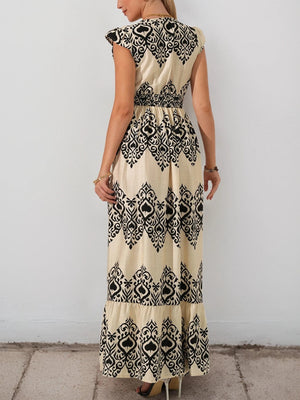 Beige bohemisk maxiklänning med svart mönster