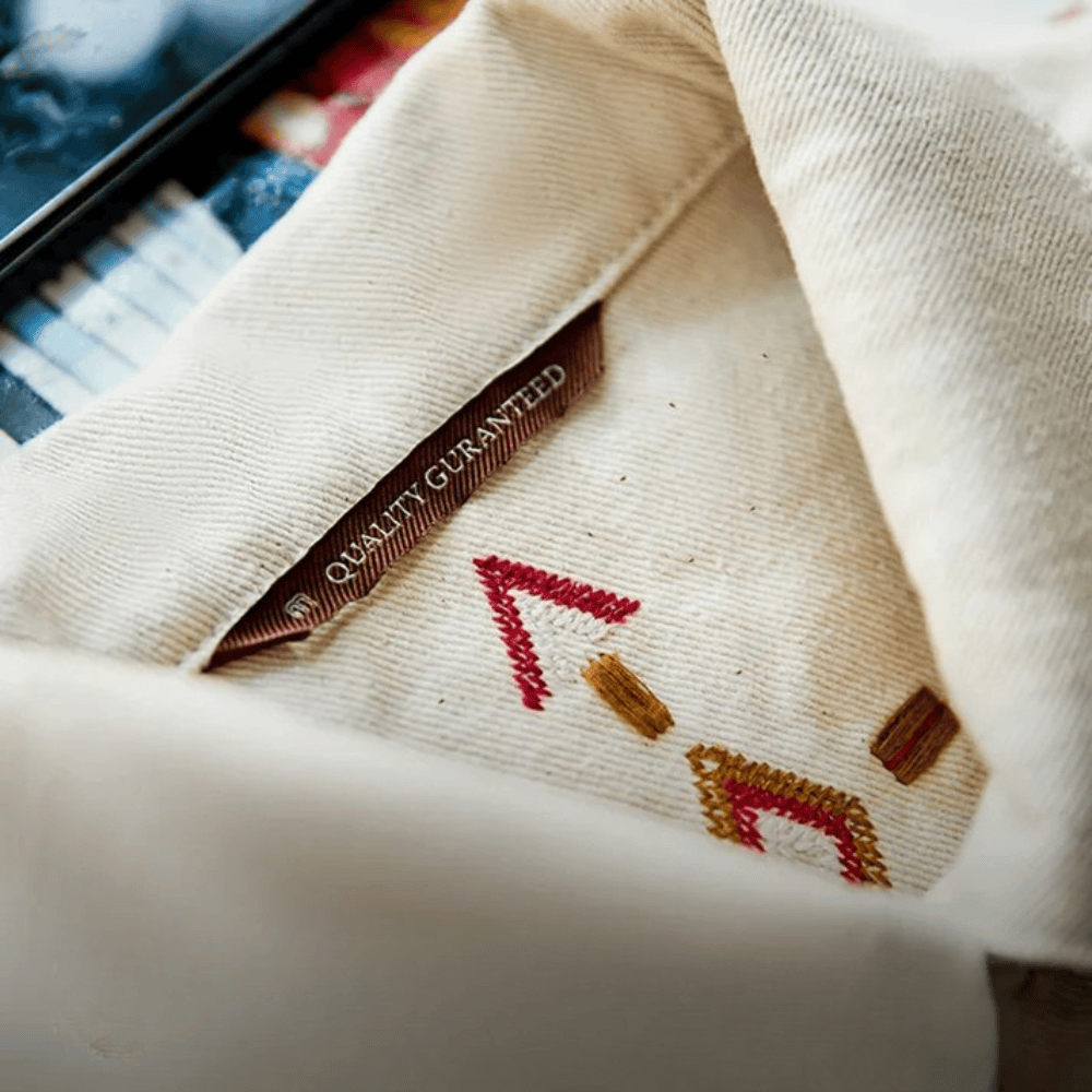 - Naturligt rå känsla – de små mörka prickarna i tyget är avsiktligt bevarade bomullsfrön som ger jackan en unik, vintagepräglad struktur.