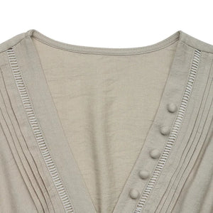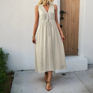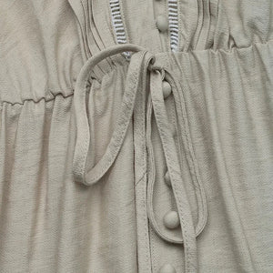 Låt din stil blomstra med denna luftiga och tidlösa beige maxi-klänning. Perfekt för varma sommardagar, strandpromenader eller avslappnade kvällar i trädgården.