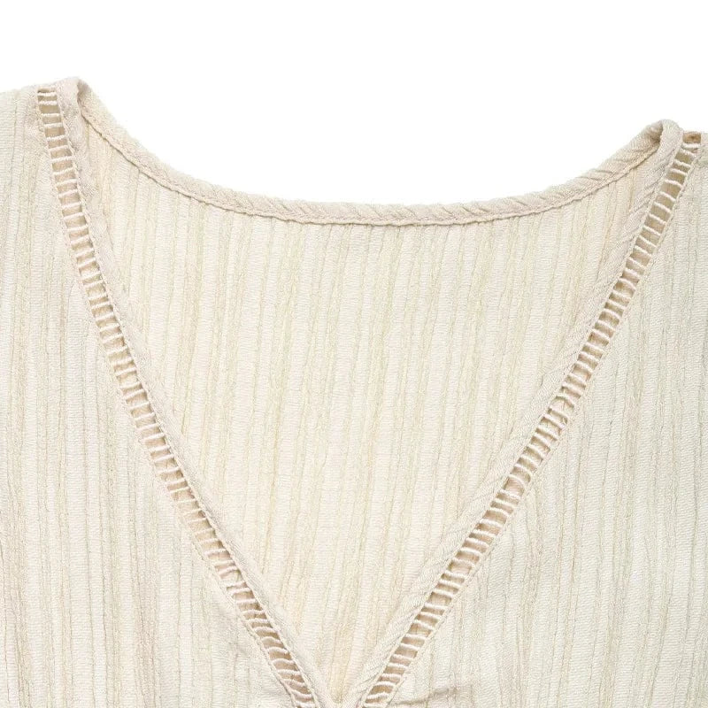 Drömmer du om en klänning som känns både elegant och avslappnad? Denna beige klänning med volang är det självklara valet för dig som vill ha en luftig, tidlös look som funkar lika bra på stranden som till en middag i kvällssolen.