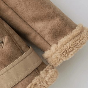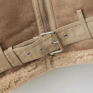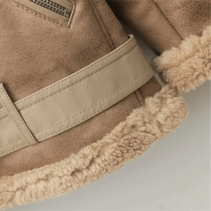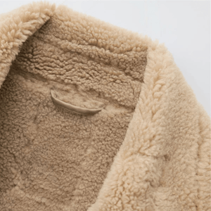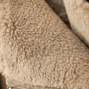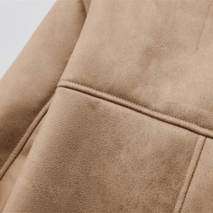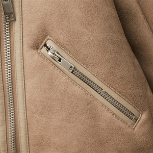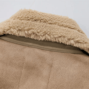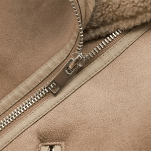 Låt dig omslutas av värme och stil i denna beige shearlingjacka. Med sin tidlösa design och mjuka foder blir den snabbt din favorit under höst- och vintermånaderna.