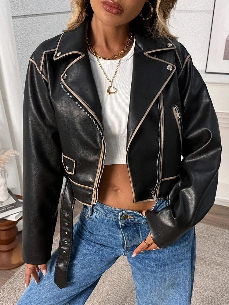 - Detaljer som sticker ut – dragkedjor, bälte och kontrasterande sömmar för en riktig biker-känsla.