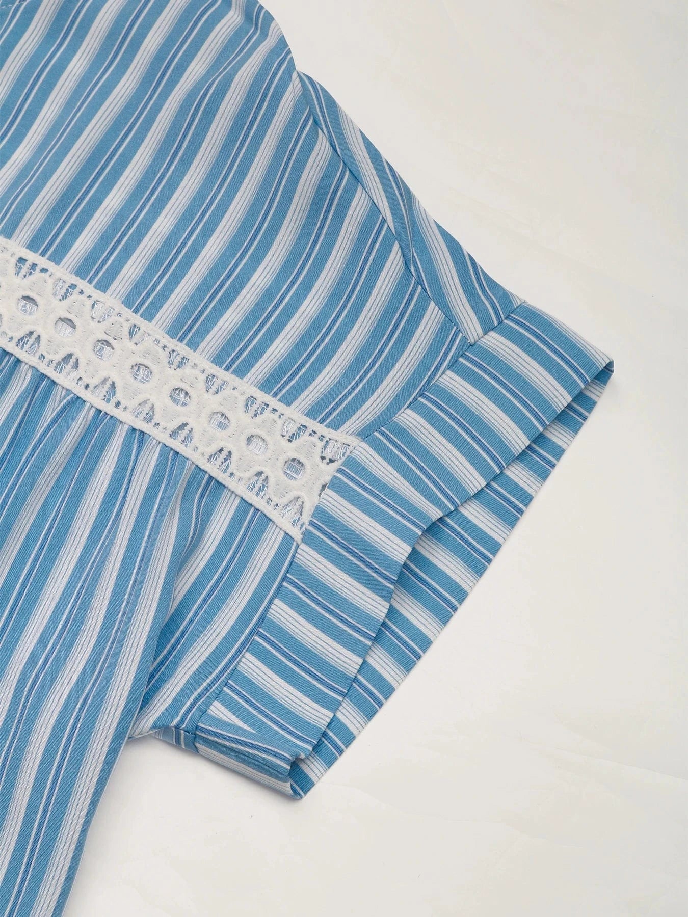 Blå vit randig blus – fräsch sommarstil med romantisk spetsdetalj