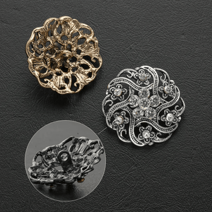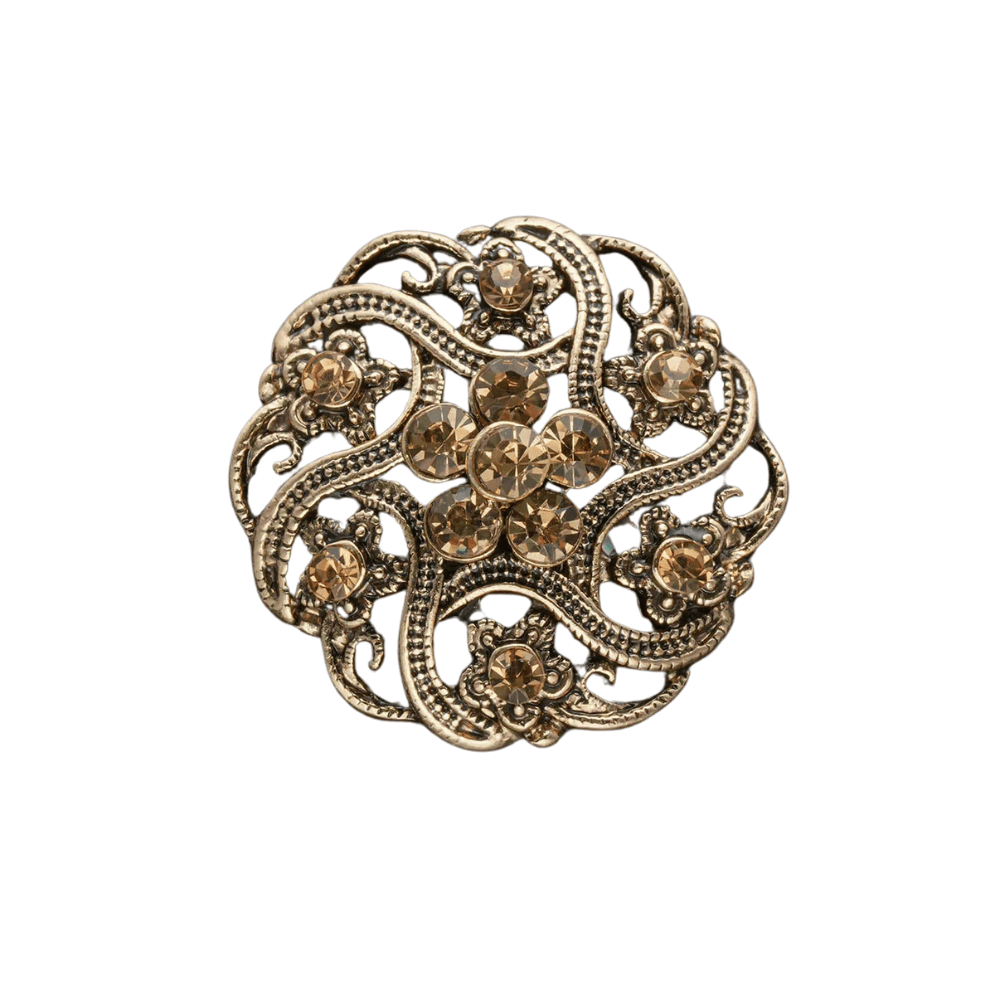 - Lyxigt hantverksintryck – vackert formad metall med präglade detaljer och kristallinfattning.