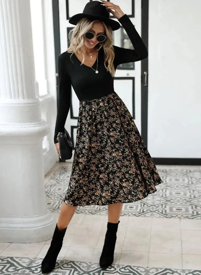 Ge din garderob en uppgradering med denna underbara blommiga höstklänning. Perfekt för dig som vill känna dig både bekväm och elegant under kyligare dagar.
