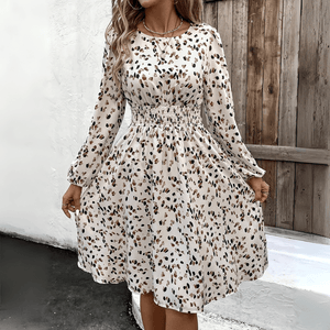 Blommig klänning med långa ärmar och markerad midja – din nya favorit för alla tillfällen