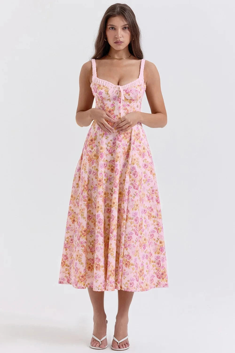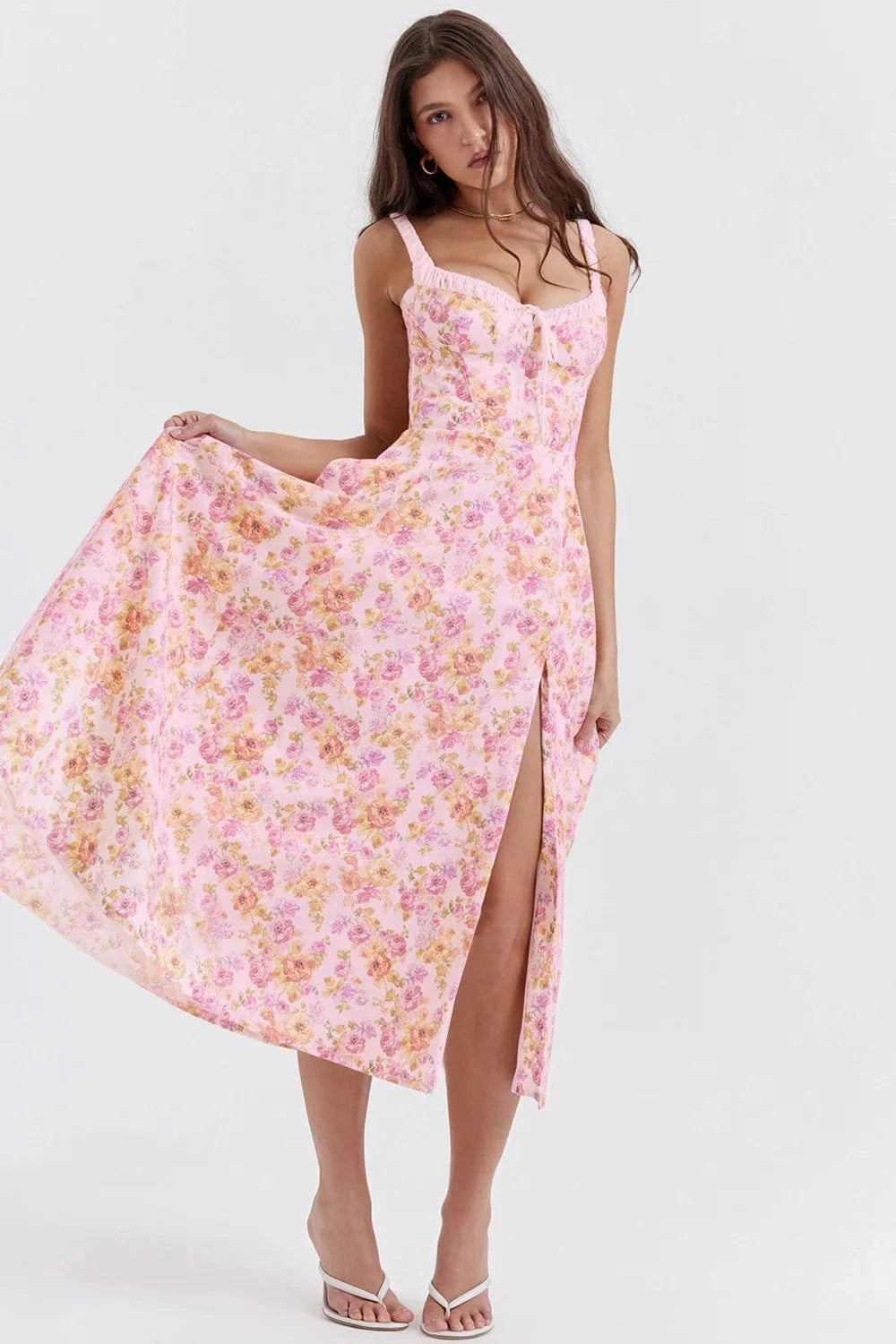 Fånga känslan av en varm midsommarnatt med vår blommiga klänning. Den perfekta kombinationen av romantik och bohemisk charm – för dig som vill känna dig både fri och elegant.