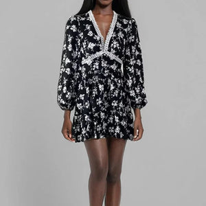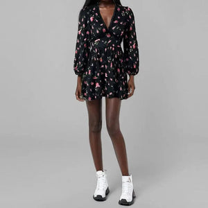 Blommig miniklänning med V-ringning och puffärmar – sommarens mest romantiska look