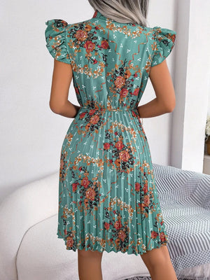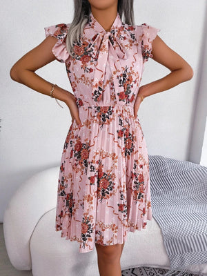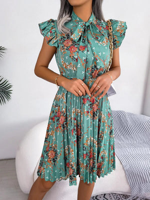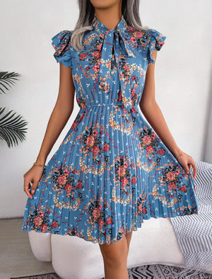 Blommig plisserad klänning med rosett – för en lekfull och romantisk stil