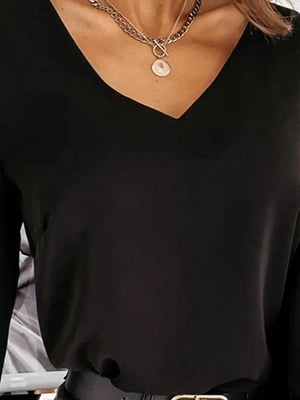 - Halsringning: Djup V-ringning fram