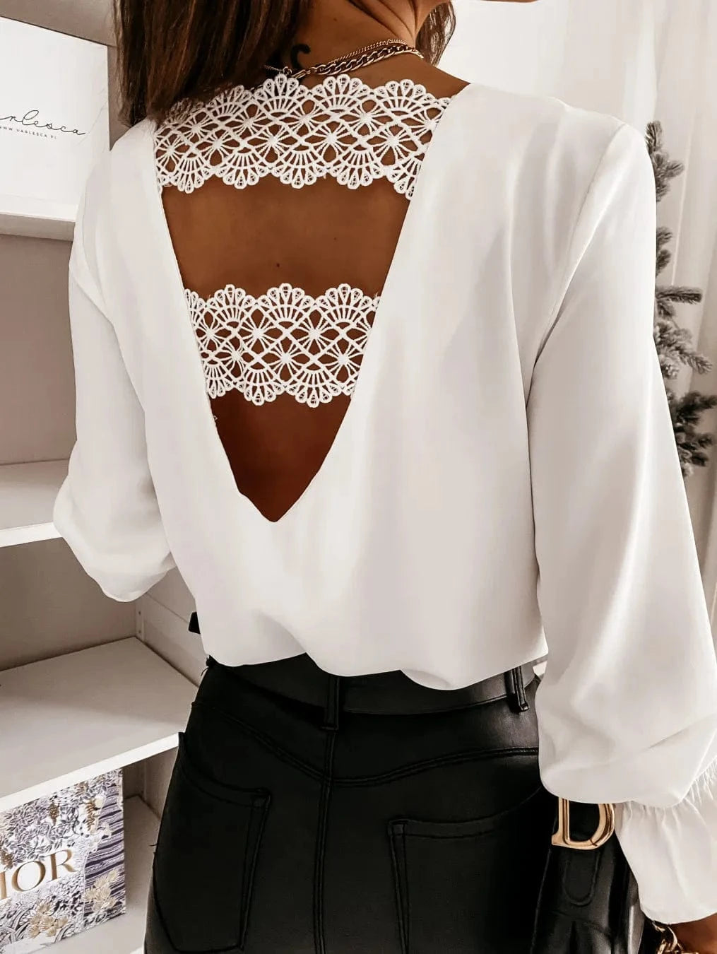 Blus med öppen rygg – elegant charm med spetsdetaljer