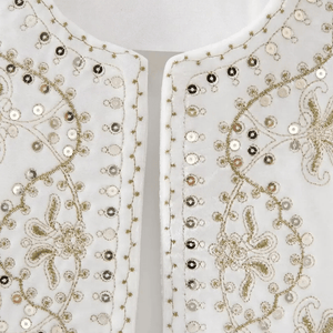 - Detaljer: Glittrande paljettbroderi, blommönster