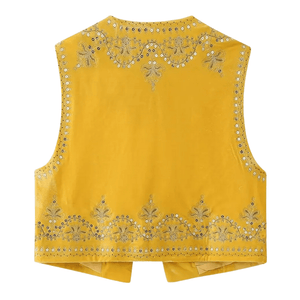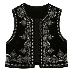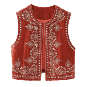 Bohemisk Festväst i Sammet med Glittrande Detaljer