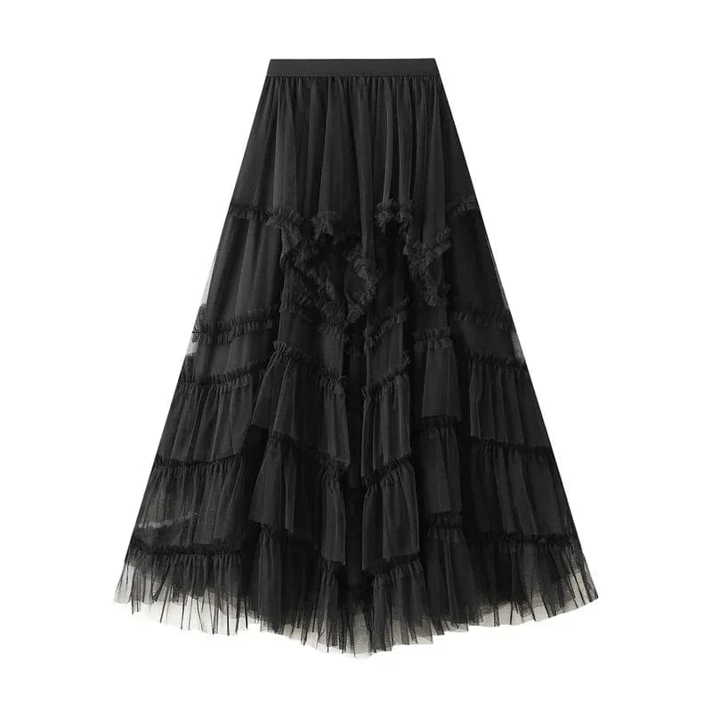 Fånga den fria, bohemiska själen och ge din outfit en touch av lantlig elegans med denna böljande präriekjol i tyll. Perfekt för allt från sommarpromenader till kvällar under stjärnorna.