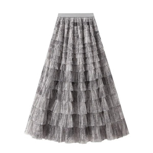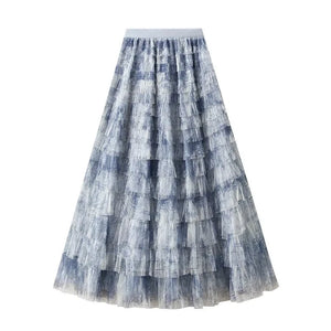 Låt vinden dansa genom lagren av mjuk tyll medan du rör dig med självsäker elegans. Denna bohemiska maxikjol med unikt tie-dye mönster ger dig en stil som både känns tidlös och levande.