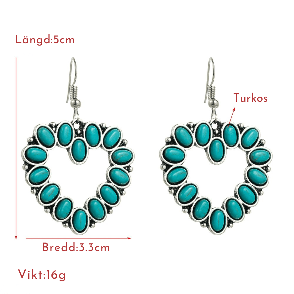 - Bohemisk elegans – turkosa stenar i hjärt- och droppform med kors ger en färgstark och konstnärlig känsla.