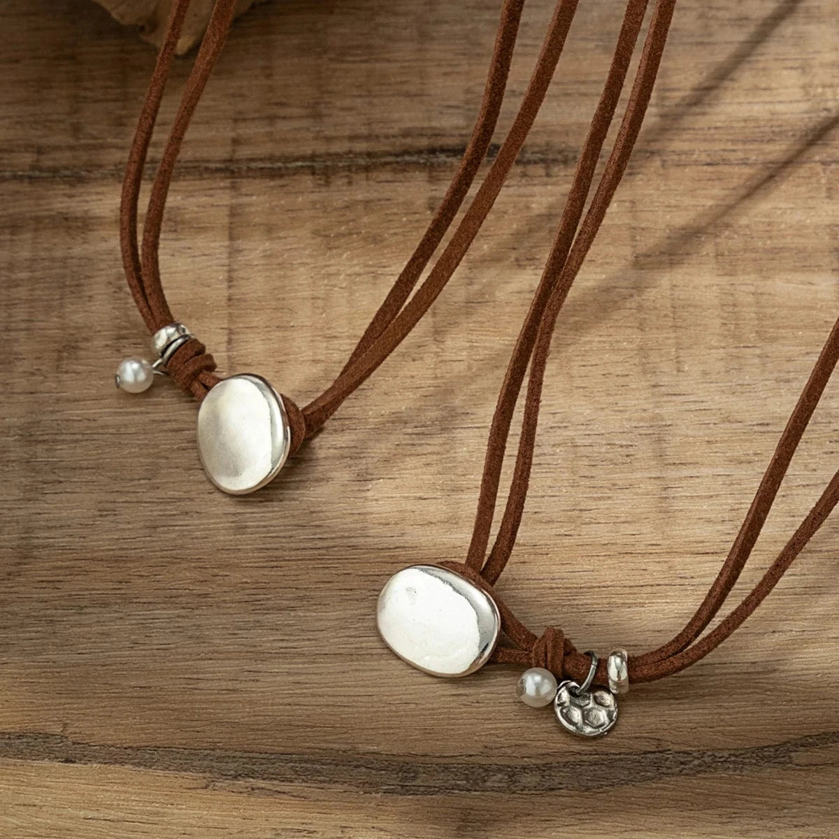 Bohemiskt choker-set i läder med silverhänge – din nya westernfavorit