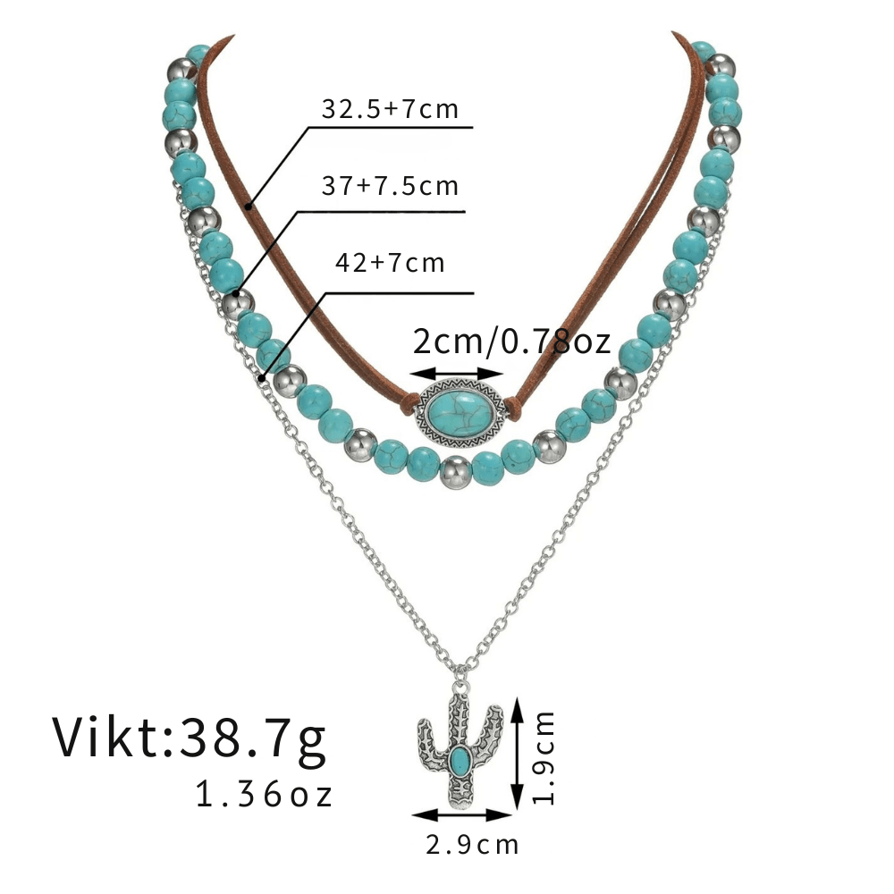 Lyft din stil med detta bohemiska halsbandsset och låt turkosen och kaktusen bli dina nya favoriter. Beställ idag och känn den fria andan i varje detalj.