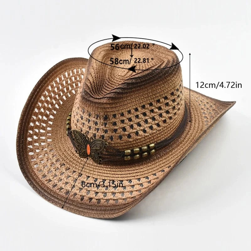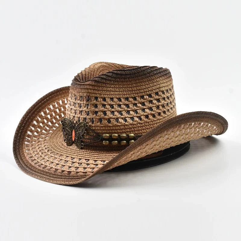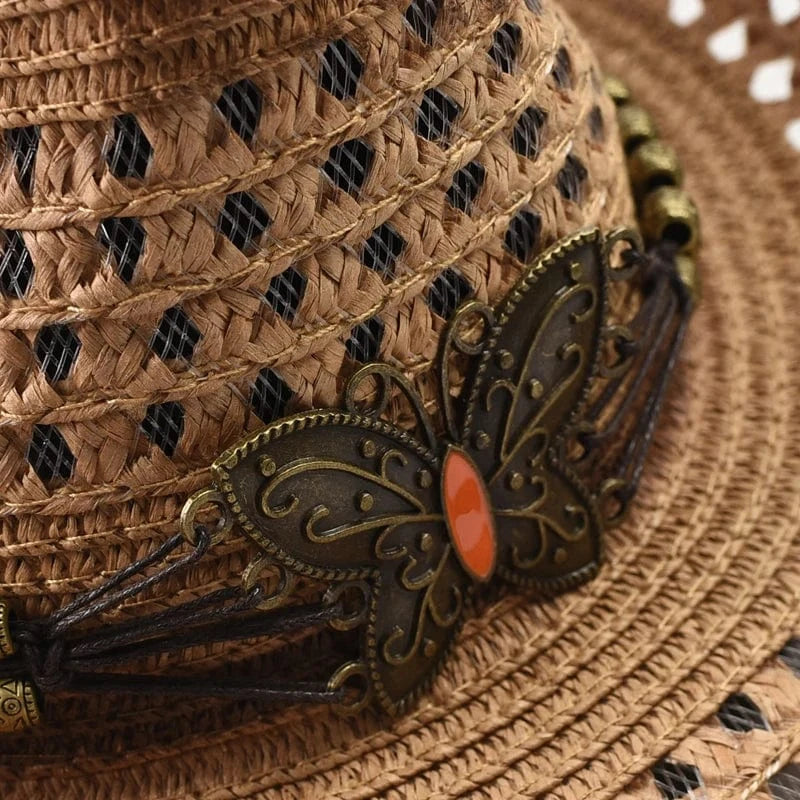 Boho cowboyhatt med fjäril: låt din fria själ glänsa i solen