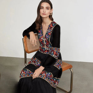 Upplev friheten i en klänning som kombinerar traditionell boho-stil med modern elegans. Vår svarta boho klänning med broderade detaljer är lika perfekt för vardag som för speciella tillfällen.