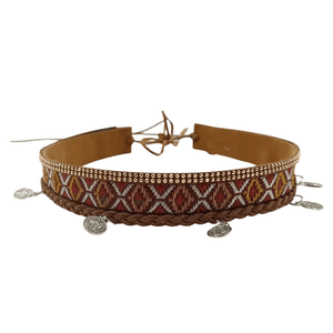 Låt din hatt få samma själ som dina äventyr. Det här boho-inspirerade westernhattbandet ger varje fedora en varm, jordig karaktär och en stil som känns både fri, tidlös och självsäker. De detaljerade vävda mönstren och de små metallhängen skapar en subtil rörelse som fångar ljuset – och uppmärksamheten.