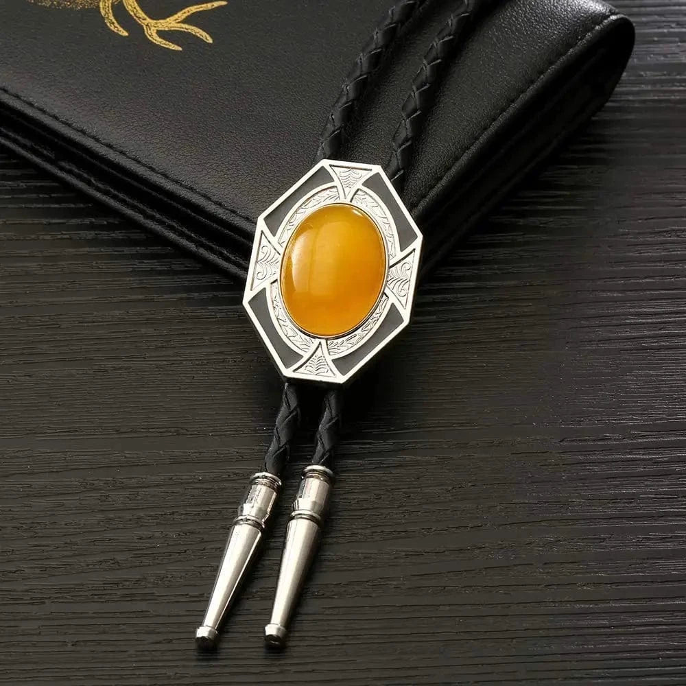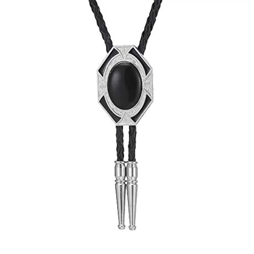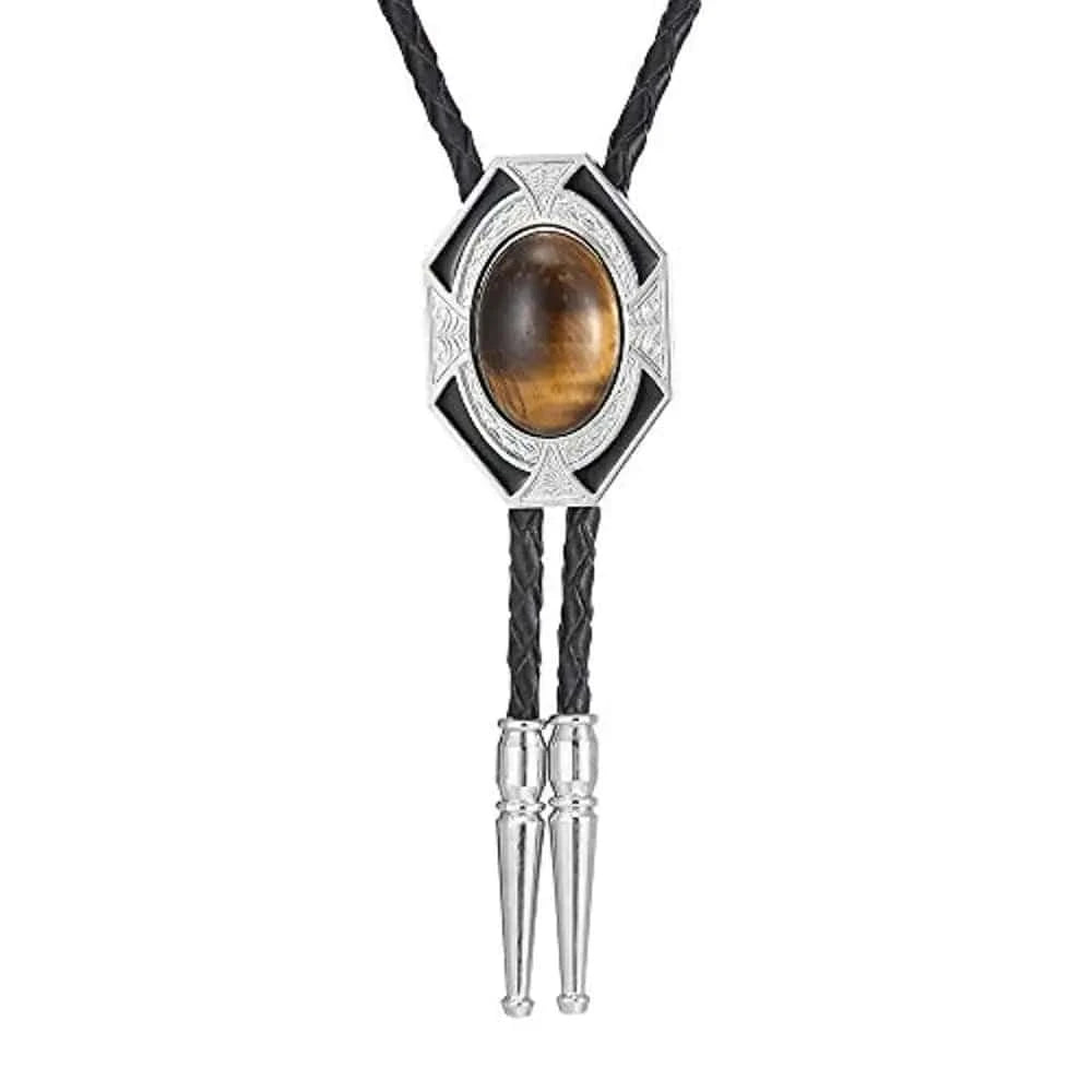 Bolo tie med äkta läder och unik geometrisk sten – skapa ett uttrycksfullt intryck
