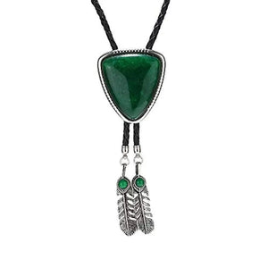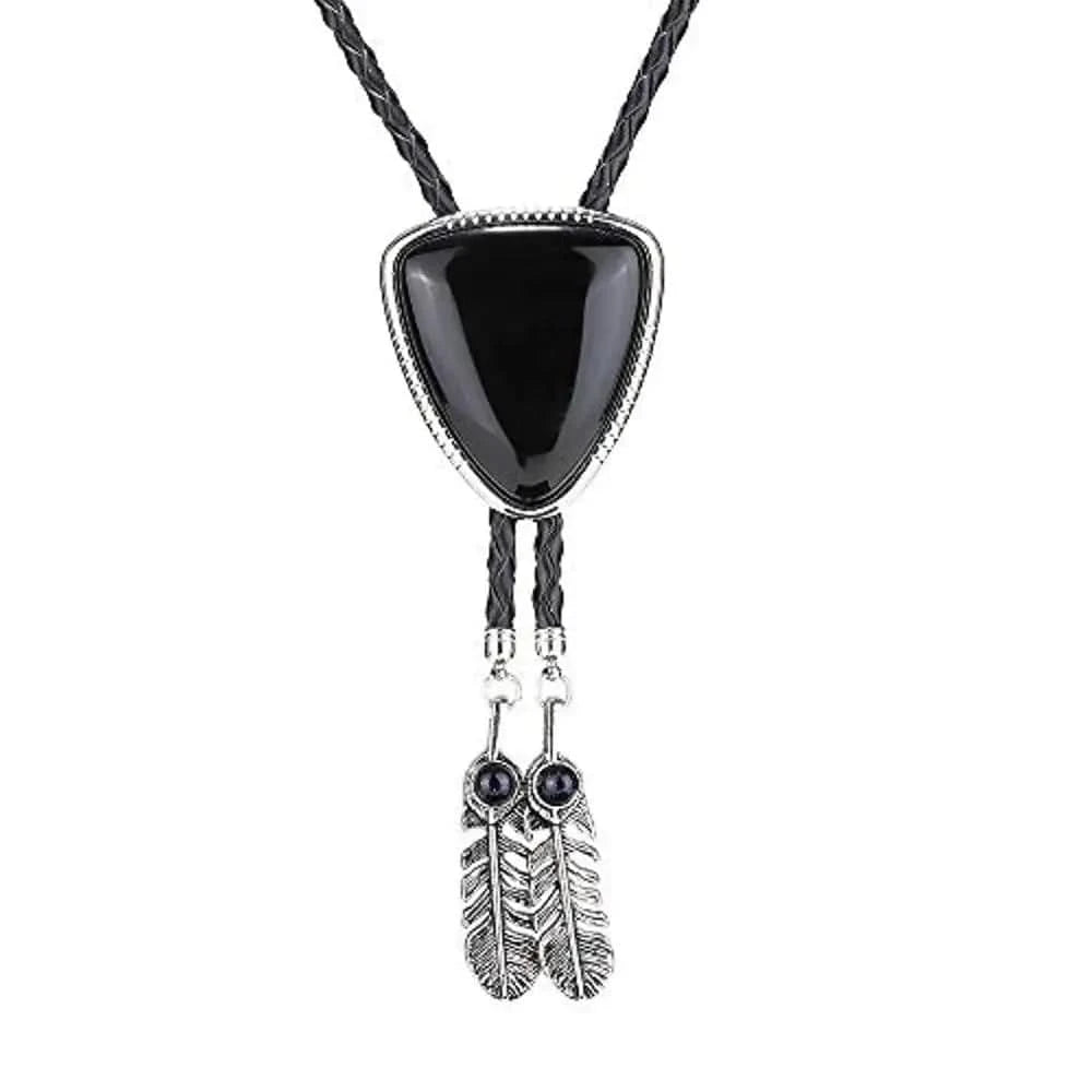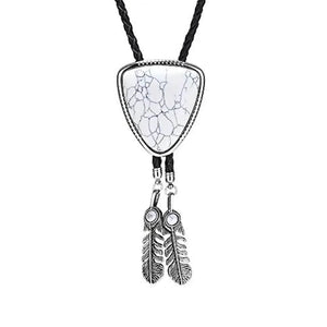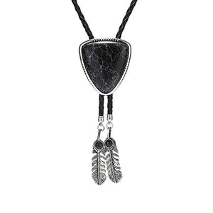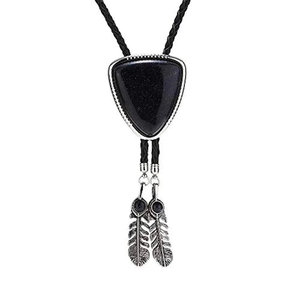 Bolo tie i triangelform med fjäderdetalj och natursten