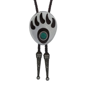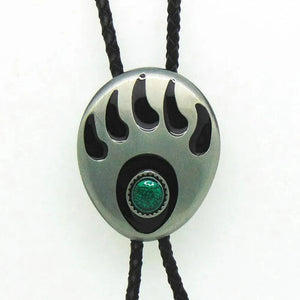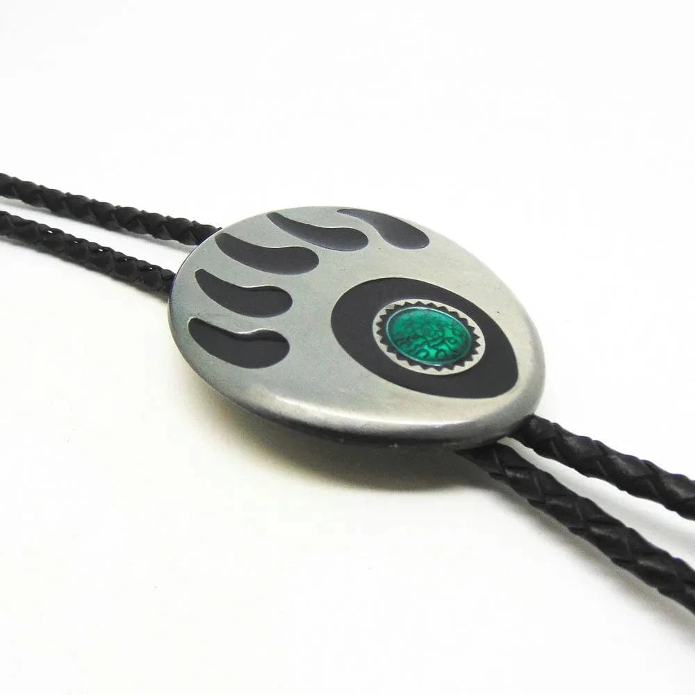 Letar du efter ett smycke som väcker nyfikenhet och förmedlar styrka? Den här bolo tie med björnspår i svart på borstad metall och en glittrande agatsten i mitten är både kraftfull och distinkt. En modern tolkning av westernklassikern – redo att bära till skjorta eller jacka.