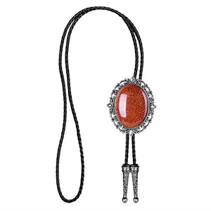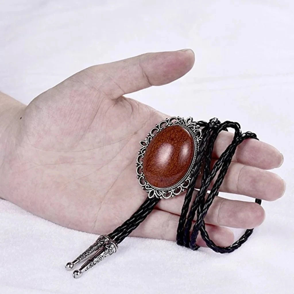 Ge din outfit en dos av vilda västern och vintage-elegans med denna utsökta bolo tie. Den bruna naturstenen omsluts av en detaljrik, snirklig metallram som fångar både blickar och komplimanger.