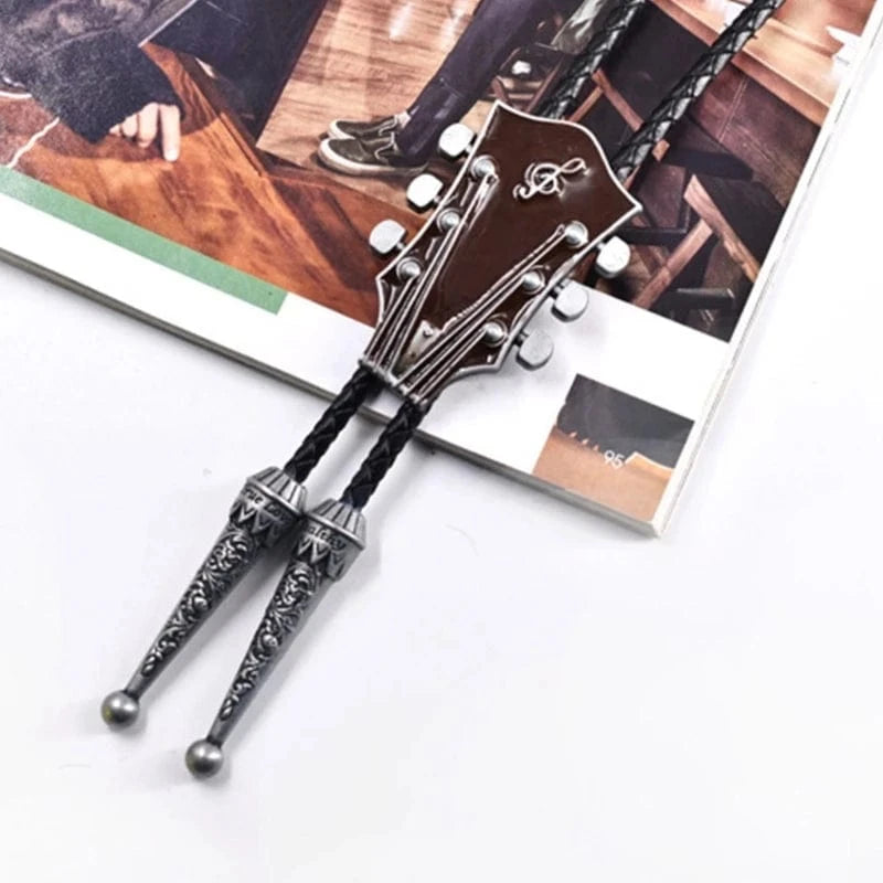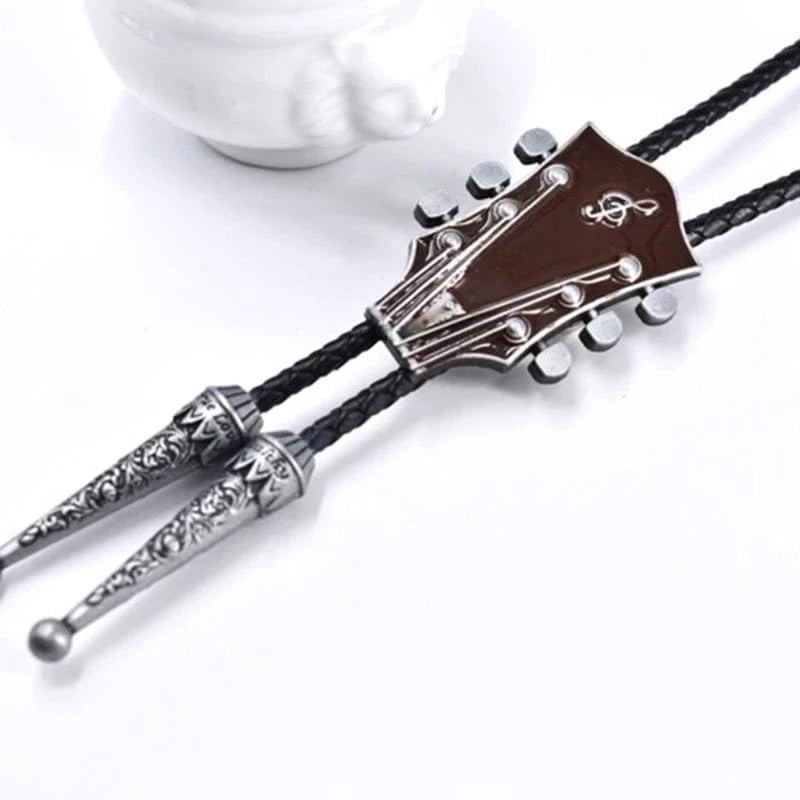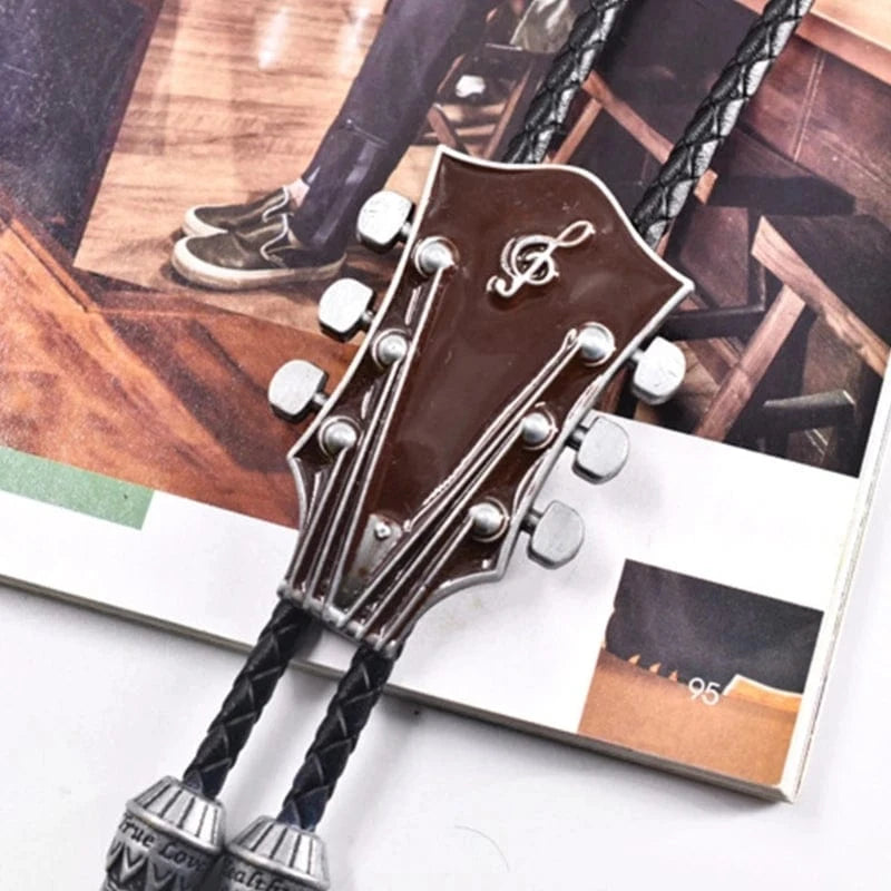 Sätt tonen för din outfit med denna unika bolo tie inspirerad av gitarrhuvudets ikoniska form. Ett måste för alla som vill uttrycka sin personlighet med ett hint av western och rock’n’roll.