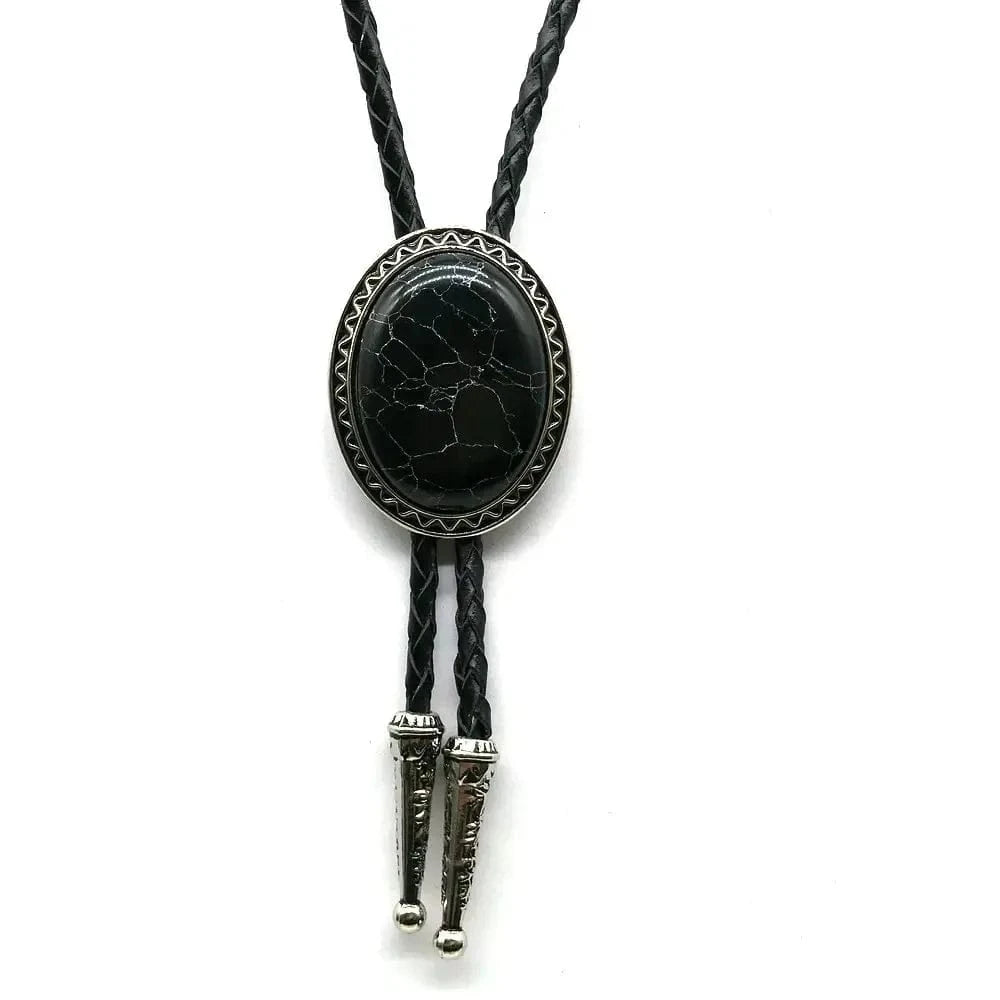 Bolo tie med glasdetalj och ovalt vintagehänge
