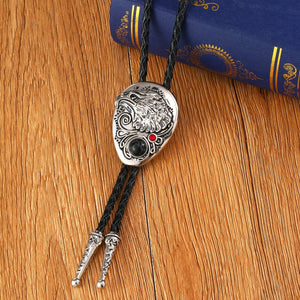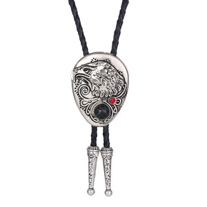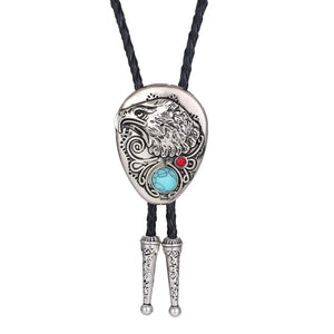 Vill du bära något som förmedlar frihet, styrka och stil? Denna bolo tie med ett majestätiskt örnhuvud i silverfärgad zinklegering, kombinerad med naturliga ädelstenar och flätat läder, är ett uttryck för både kraft och personlighet.