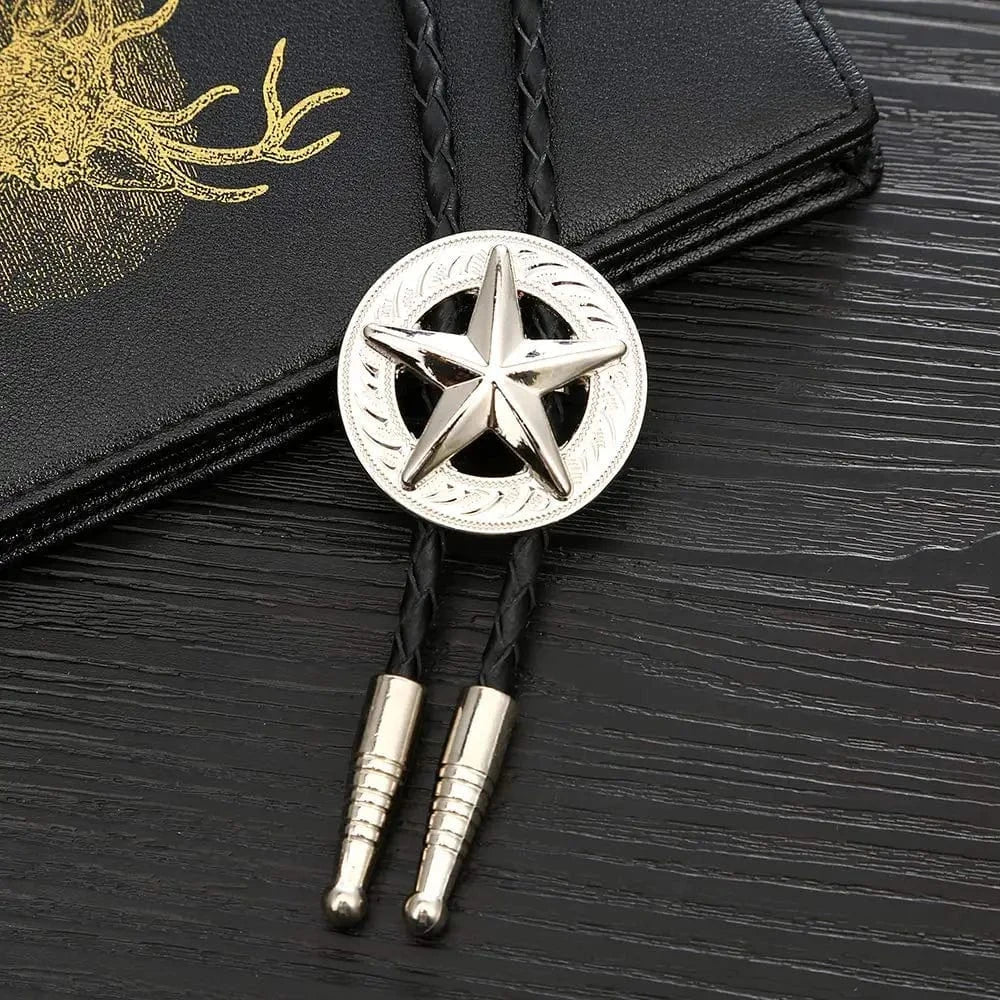 Gör ett intryck med denna distinkta bolo tie, inspirerad av westernkulturen. Med en glänsande femuddig stjärna i silver eller guld är den ett statement som lyfter varje outfit.
