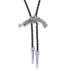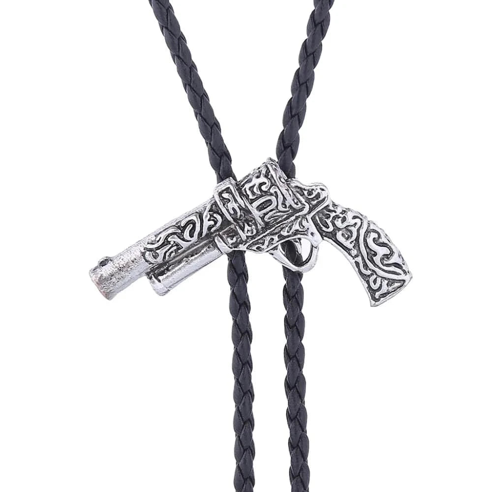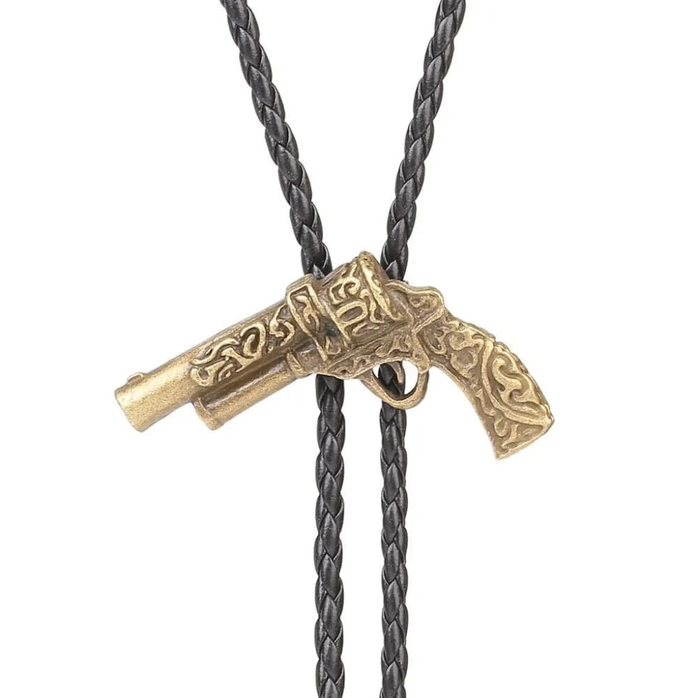 Letar du efter något som verkligen sticker ut? Denna bolo tie med detaljerad revolverdesign är det ultimata cowboyinspirerade smycket som adderar rå karaktär och nostalgi till din look – oavsett om du bär den till skjorta, jacka eller bara som statement.