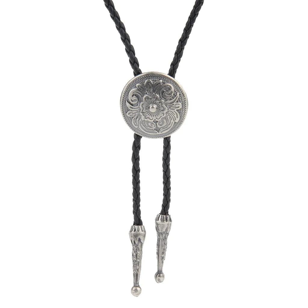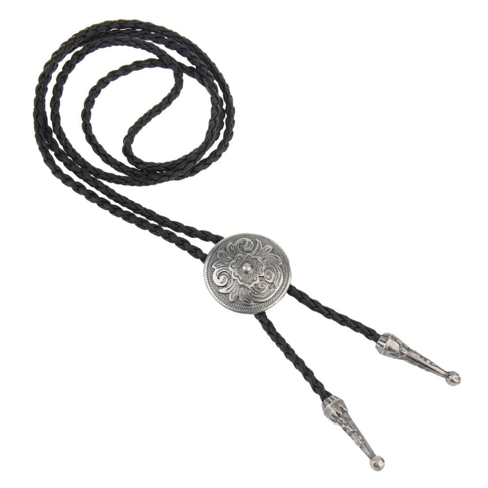 Bolo tie med rund blommönstrad silvermedaljong