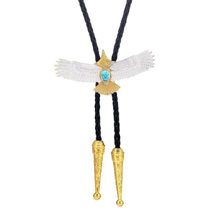 Bolo tie med silver- och guldfärgad örn och blå sten