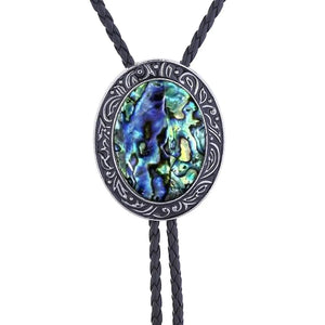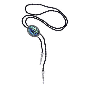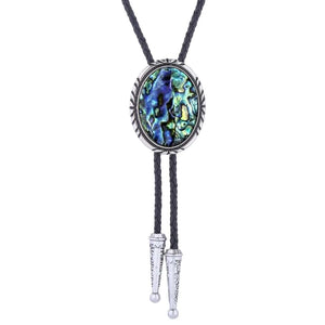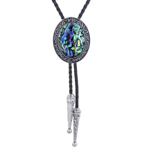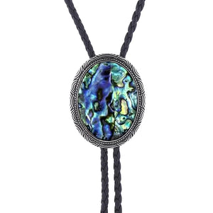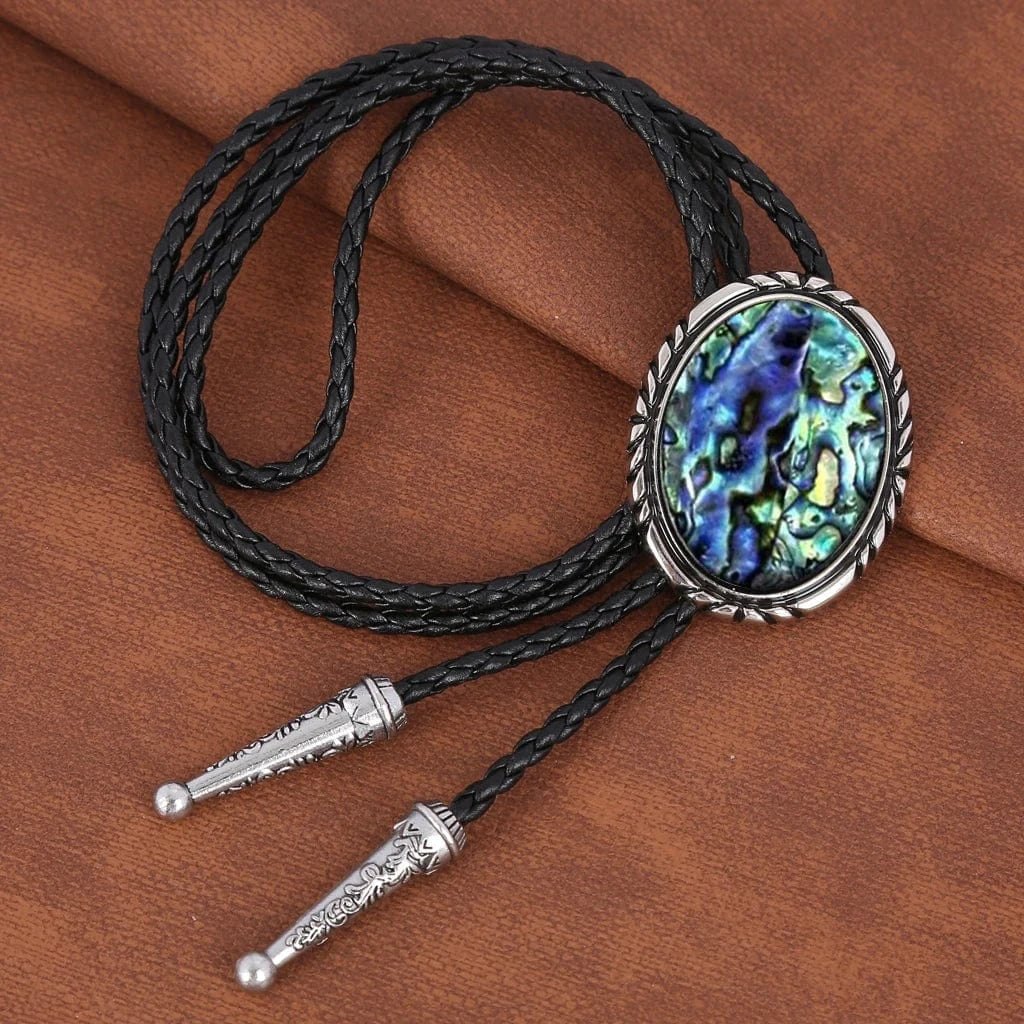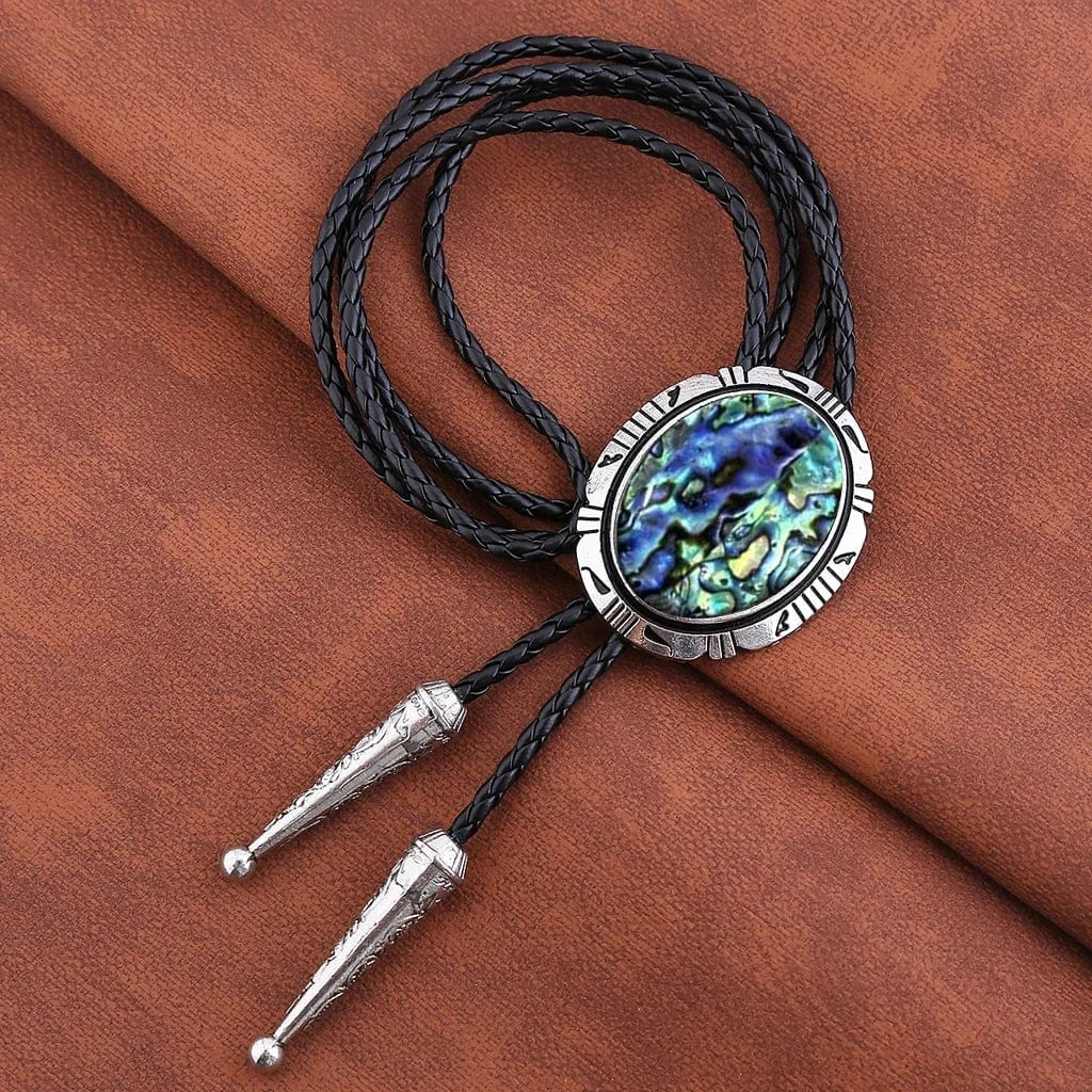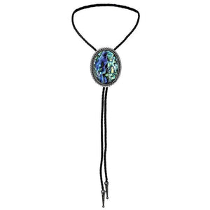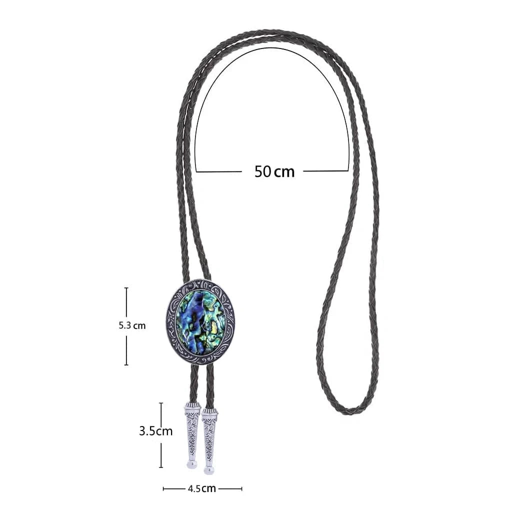 Kliv in i en värld där western möter modern elegans. Denna bolo tie med snäckstensinlägg är lika mycket ett smycke som ett konstverk – skapad för dig som vill bära något som glittrar i varje rörelse.