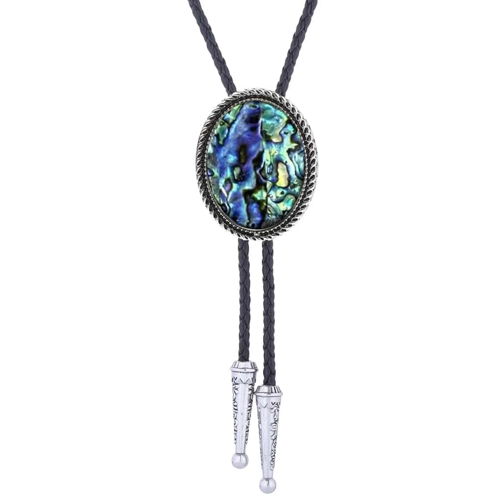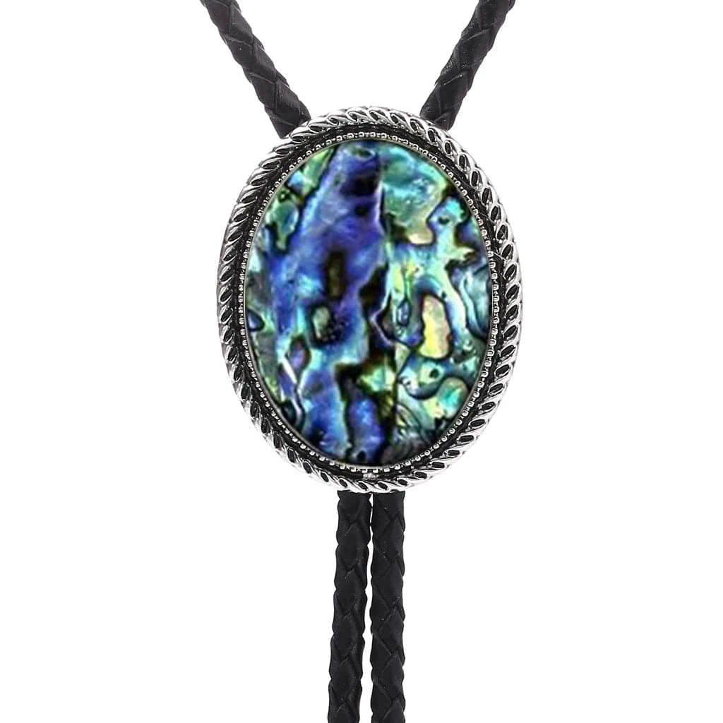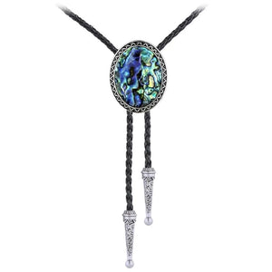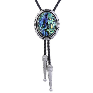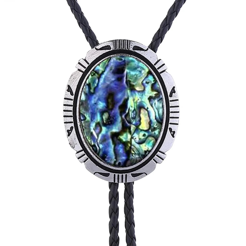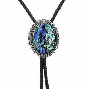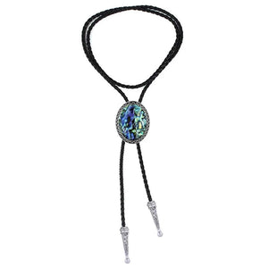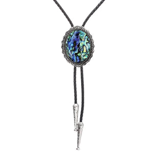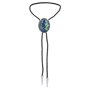Kliv in i en värld där western möter modern elegans. Denna bolo tie med snäckstensinlägg är lika mycket ett smycke som ett konstverk – skapad för dig som vill bära något som glittrar i varje rörelse.