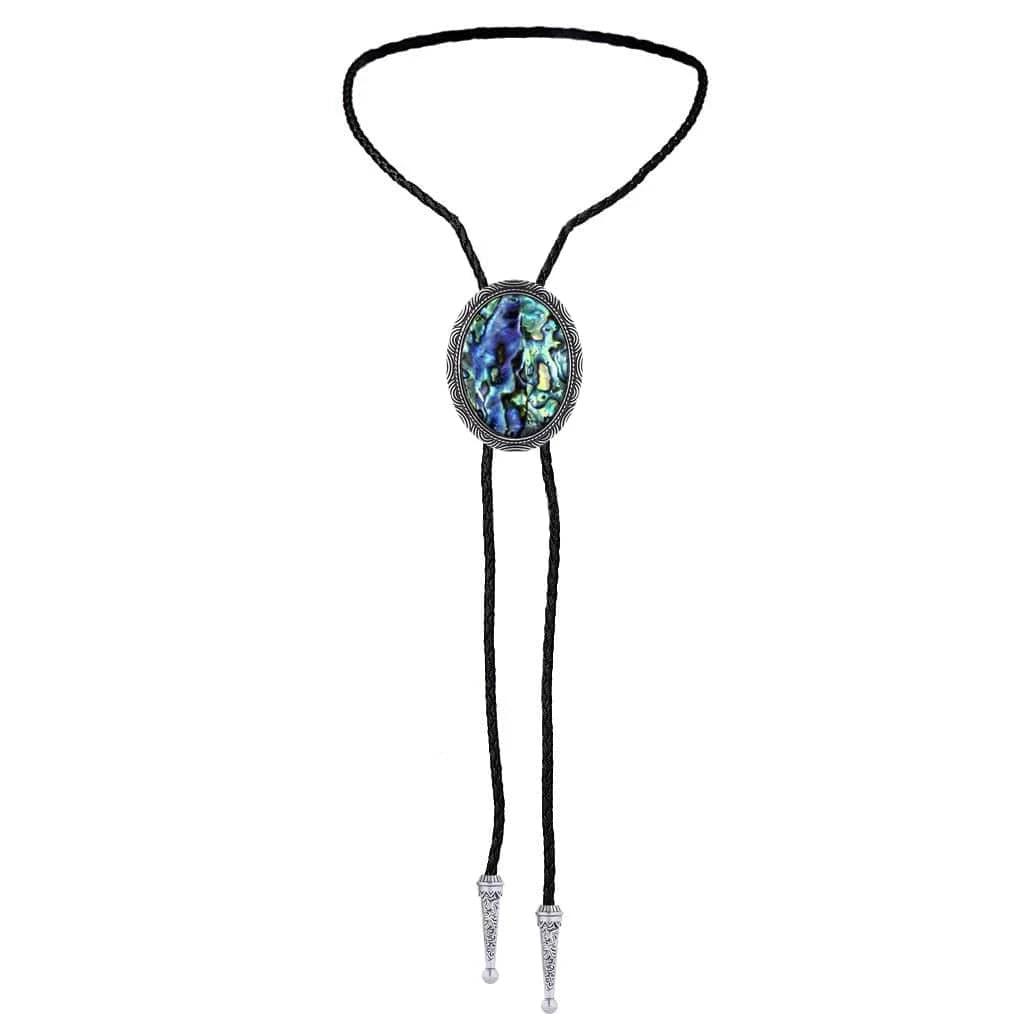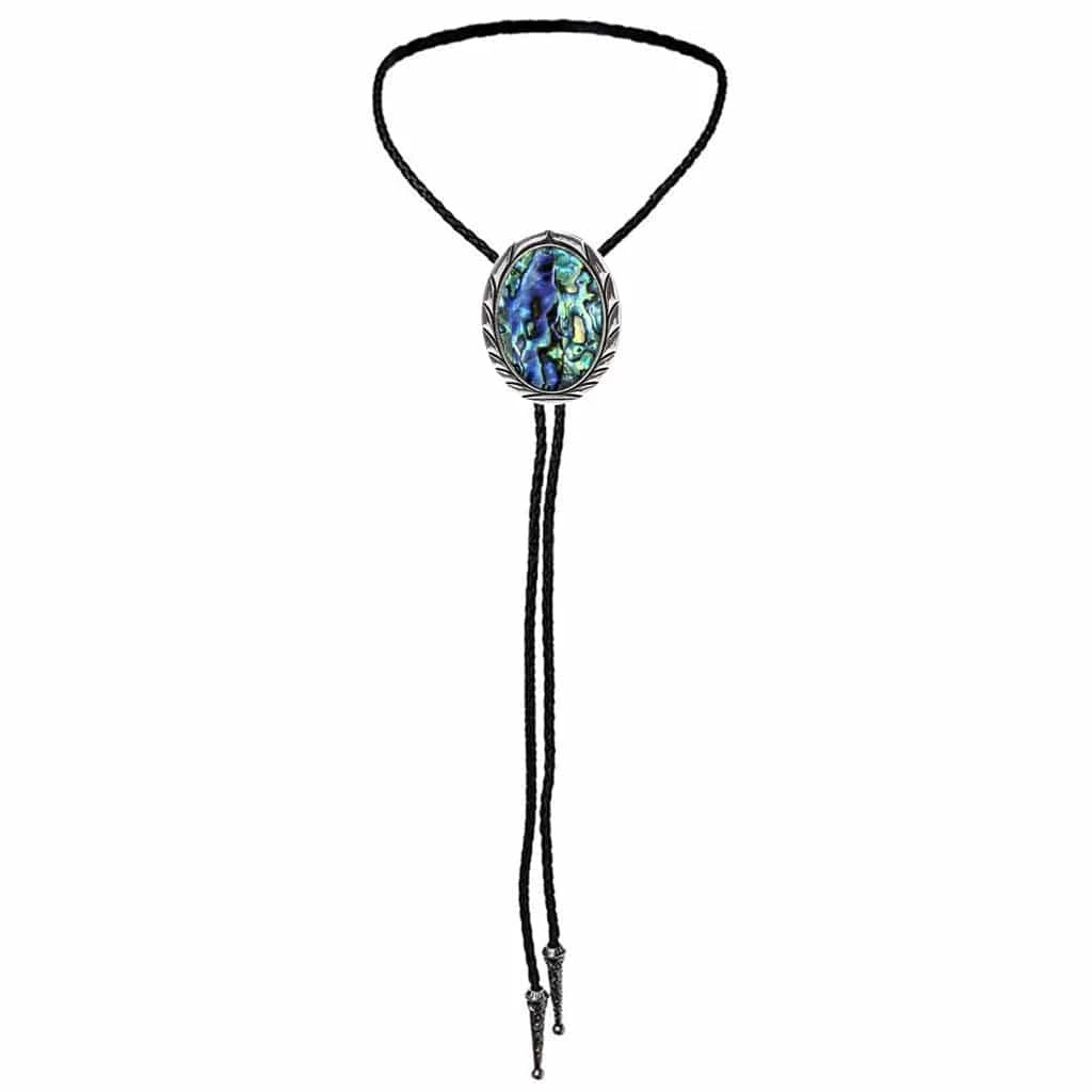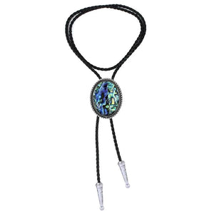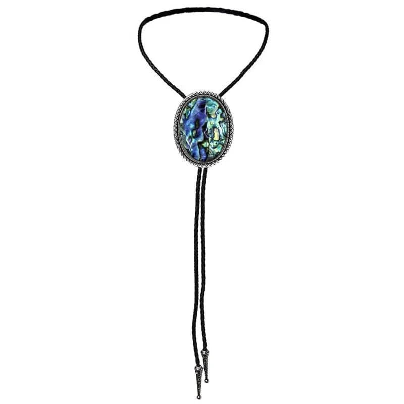 Bolo tie med snäckstenshänge i blågrönt skimrande