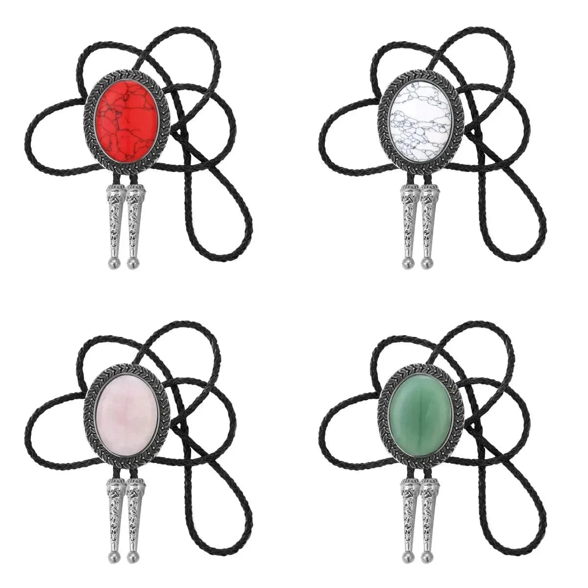 Den här bolo tie är mer än bara en accessoar – det är ett stiluttalande. Den stora ovala stenen, infattad i en metallram med karvad kant, skapar en harmonisk balans mellan westerninspiration och modern elegans.