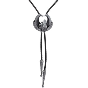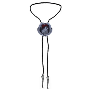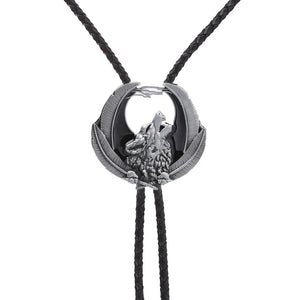 Lyft varje outfit med denna slående bolo tie – en kraftfull kombination av vild natur och tidlös western-estetik. Den ylande vargen i metall och de detaljrika fjädrarna skapar ett blickfång som balanserar styrka och finess.