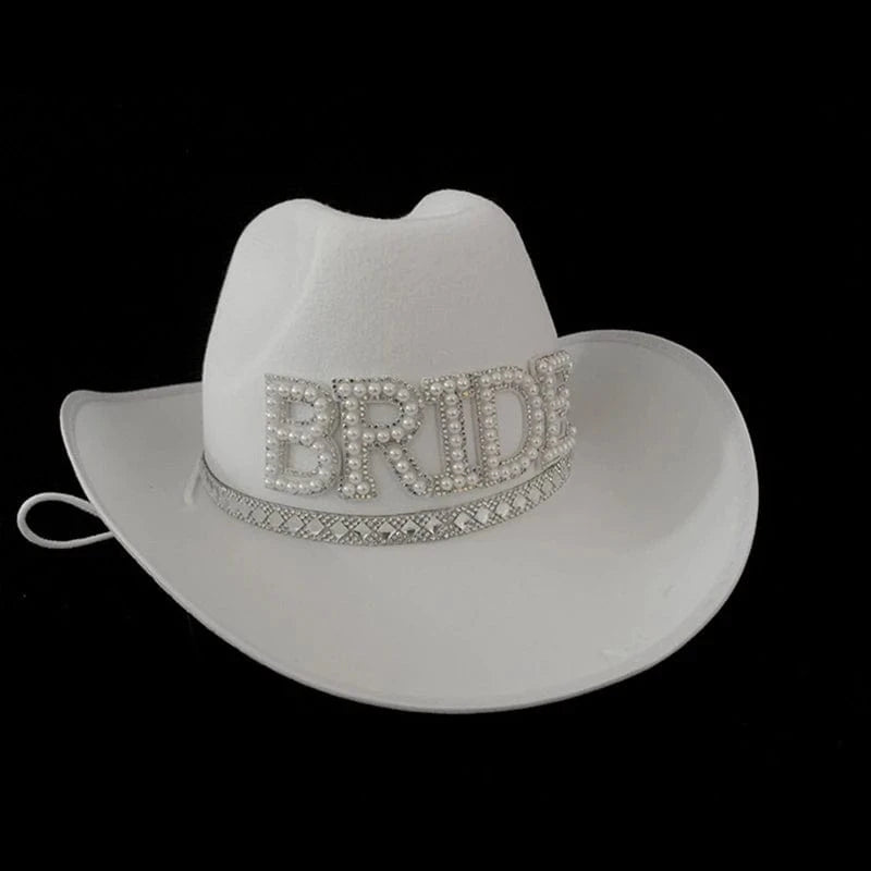 Sätt pricken över i:et på din look och låt din inre cowgirl-brud ta plats. Beställ din glittrande Bride Cowgirl Hatt idag och låt festen börja!