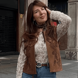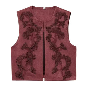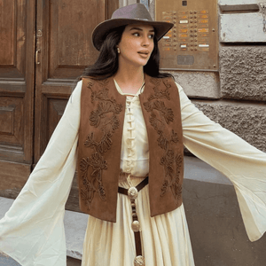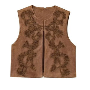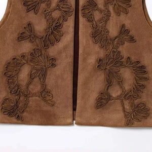 Brun broderad fuskmockaväst för din bohemiska elegans