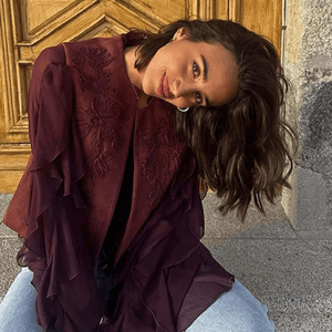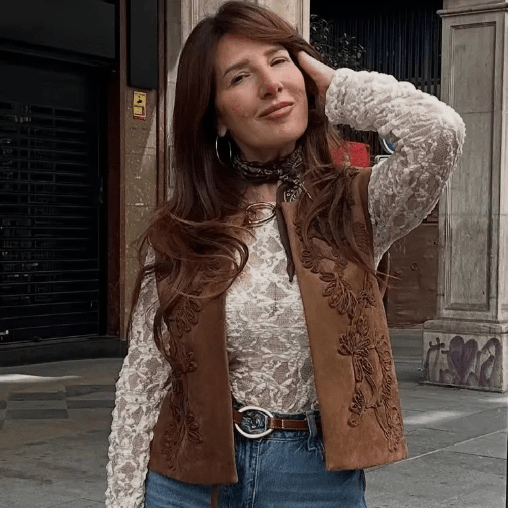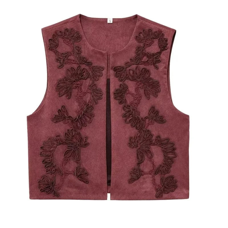 Låt din stil tala med en brun broderad fuskmockaväst som kombinerar mjuk lyx med bohemisk charm. Den är kort i modellen, lätt att bära och lyfter enkelt varje outfit – från vardagliga jeans till romantiska klänningar.