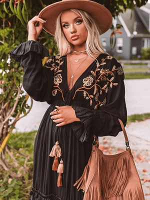 Broderad klänning: tidlös boho-elegans för varje tillfälle