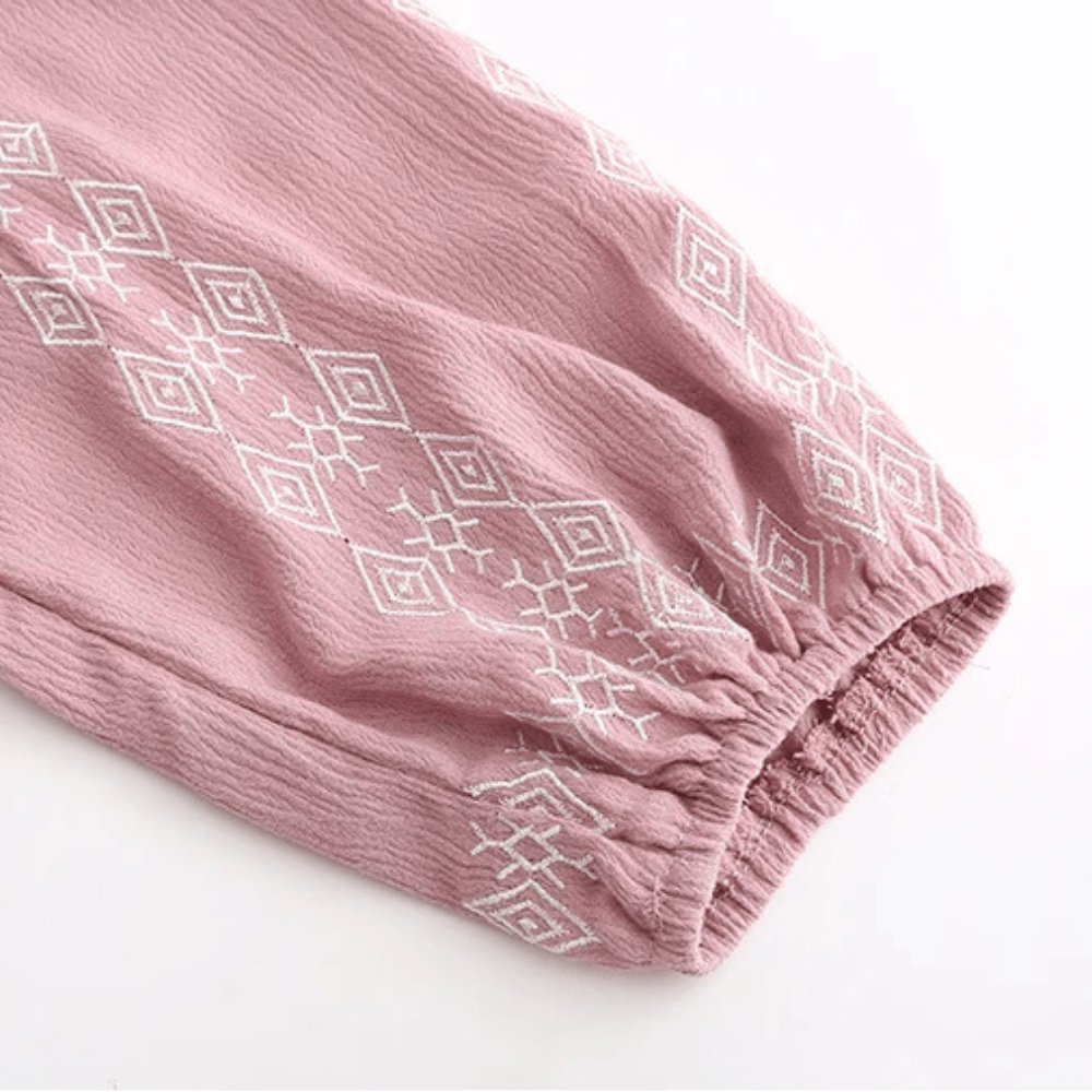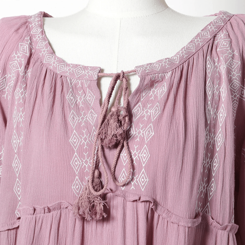 - Stil: Bohemisk, med broderi och fransar