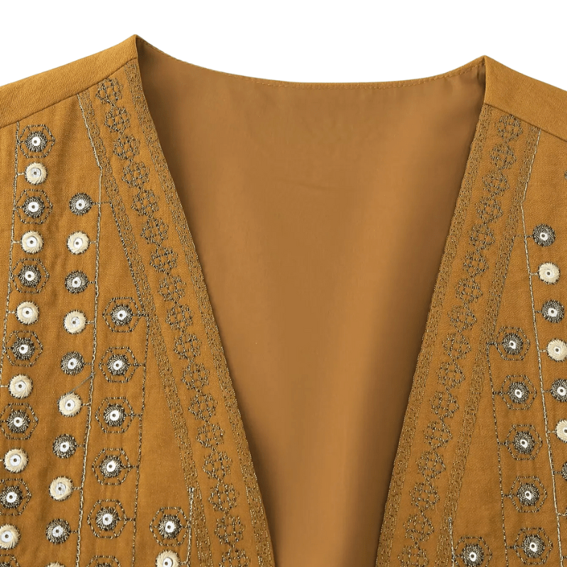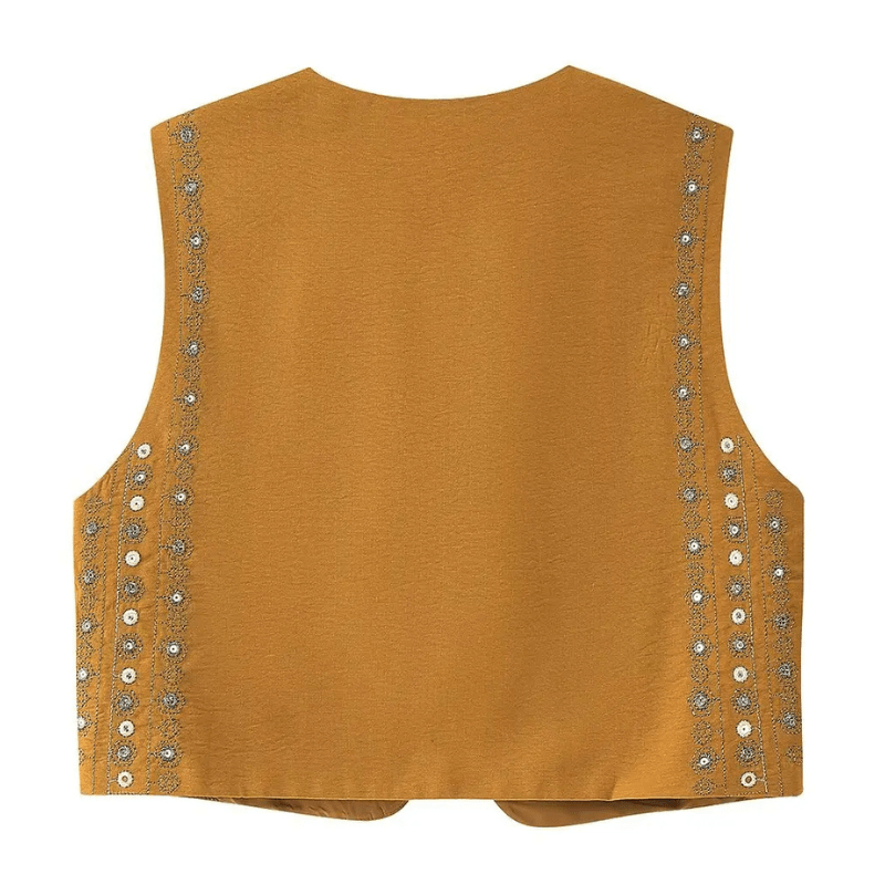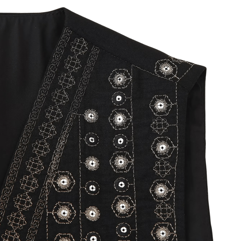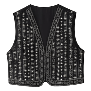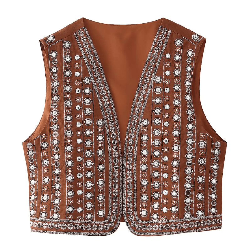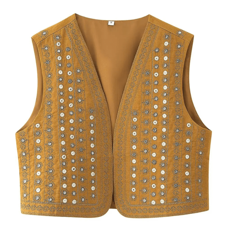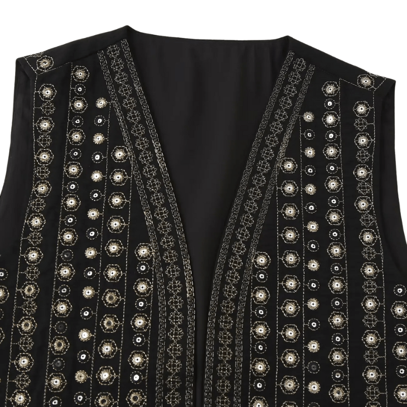 Låt din stil tala med vår broderade väst för dam, dekorerad med glittrande paljetter som fångar ljuset vid varje rörelse. Perfekt för dig som vill addera en touch av vintage och westerncharm till din garderob.