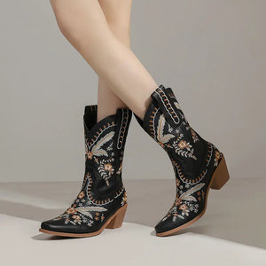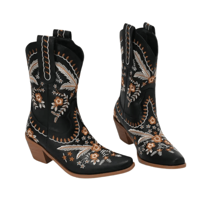 Broderade cowboyboots i boho stil med 6 cm klack – låt din outfit tala