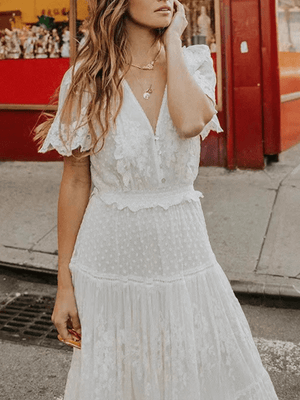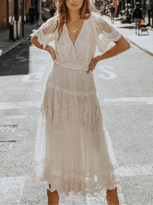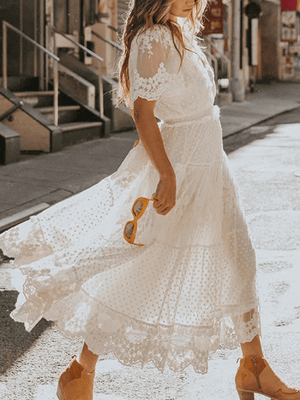 Fånga allas blickar på nästa sommarbröllop med denna bohemiska och romantiska klänning. Perfekt för dig som vill känna dig både bekväm och stilfull, med en lätt och luftig design som dansar i vinden.